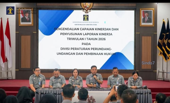 MEDAN//Liputan Sindo7 – Dalam rangka memastikan capaian kinerja berjalan optimal, Divisi Peraturan Perundang-Undangan dan Pembinaan Hukum Kantor Wilayah Kementerian Hukum Sumatera Utara menggelar Rapat Pengendalian Capaian Kinerja dan Penyusunan Laporan Kinerja Triwulan I, Selasa (10/03/2026). Kegiatan yang berlangsung di Aula Lantai 5 Kanwil Kemenkum Sumut ini diikuti oleh seluruh pegawai pada Divisi Peraturan Perundang-Undangan dan Pembinaan Hukum.