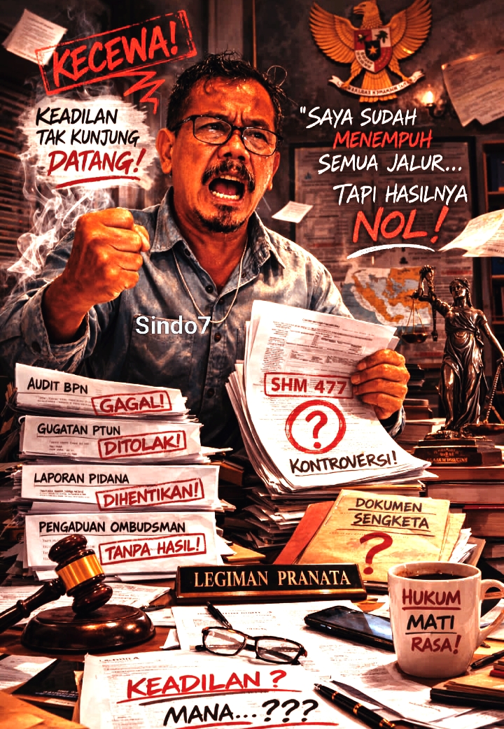 DELISERDANG//Liputan Sindo7 – Perjuangan panjang mencari keadilan kerap menjadi kisah sunyi yang jarang terdengar. Namun bagi Legiman Pranata, upaya menuntut kepastian hukum atas sengketa tanah yang berkaitan dengan penerbitan Sertifikat Hak Milik (SHM) Nomor 477 di wilayah Deli Serdang, justru berubah menjadi perjalanan panjang yang penuh tanda tanya.