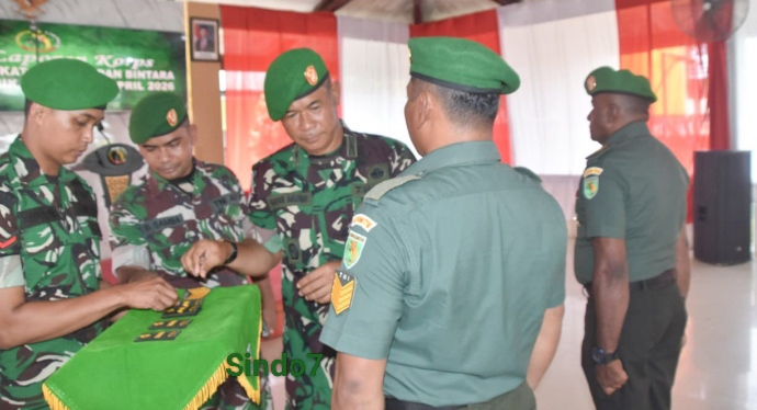 TIMIKA//Sindo7 – Komando Distrik Militer (Kodim) 1710/Mimika menggelar acara laporan korps kenaikan pangkat prajurit di Pendopo Darmawangsa pada Rabu (1/4/2026). Kegiatan tersebut dipimpin oleh Kepala Staf Kodim 1710/Mimika, Mayor Inf Abdul Munir, yang mewakili Komandan Kodim 1710/Mimika, Letkol Inf Jozanda.