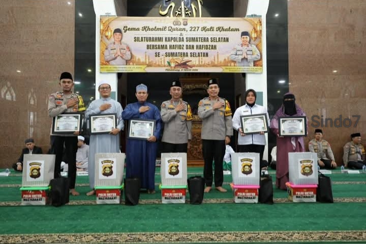 PALEMBANG//Liputan Sindo7 – Polda Sumatera Selatan melaksanakan kegiatan khataman Al-Qur’an sebanyak 227 kali dalam rangka pembinaan rohani personel di bulan suci Ramadhan 1447 H. Kegiatan tersebut dipusatkan di Masjid Assaadah Mapolda Sumsel dan dipimpin langsung oleh Kapolda Sumsel Irjen Pol Dr. Sandi Nugroho, S.I.K., S.H., M.Hum., Selasa (17/3/2026).