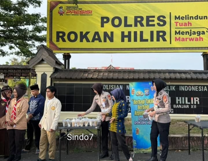 ROKAN HILIR//Liputan Sindo7 – Dalam rangka mengisi kegiatan di Bulan Suci Ramadhan 1447 H / 2026 M, Polres Rokan Hilir melaksanakan kegiatan berbagi takjil kepada masyarakat bersama Pujakesuma, Mahasiswa ITR, serta siswa-siswi Pramuka Kabupaten Rokan Hilir, Jumat (6/3/2026) sore.