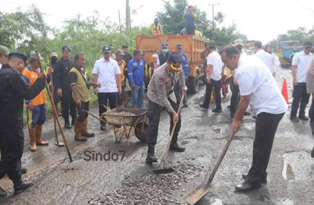Sementara itu di Kabupaten Ogan Komering Ilir, Kapolres OKI AKBP Eko Rubiyanto memimpin kegiatan perbaikan jalan di Simpang Tiga Akses Tol Kayuagung, Desa Celikah.