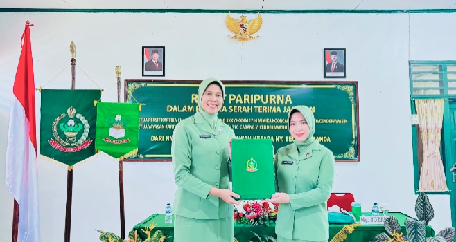 TIMIKA//Liputan Sindo7 – Bertempat di Kantor Persit Kodim 1710/Mimika, telah diselenggarakan Rapat Paripurna dalam rangka serah terima jabatan Ketua Persit Kartika Chandra Kirana (KCK) Cabang XXXV Kodim 1710/Mimika dan Ketua Yayasan Kartika Jaya Koordinator Kodim 1710/Mimika, yang berlokasi di Jalan Agimuga, Mile 32, Kuala Kencana, Sabtu (4/4/2026). Jabatan Ketua Persit Kartika Chandra Kirana Cabang XXXV Kodim 1710/Mimika yang sebelumnya diemban oleh Ny. Redi Dwi Yuda secara resmi diserahterimakan kepada Ny. Jozanda.